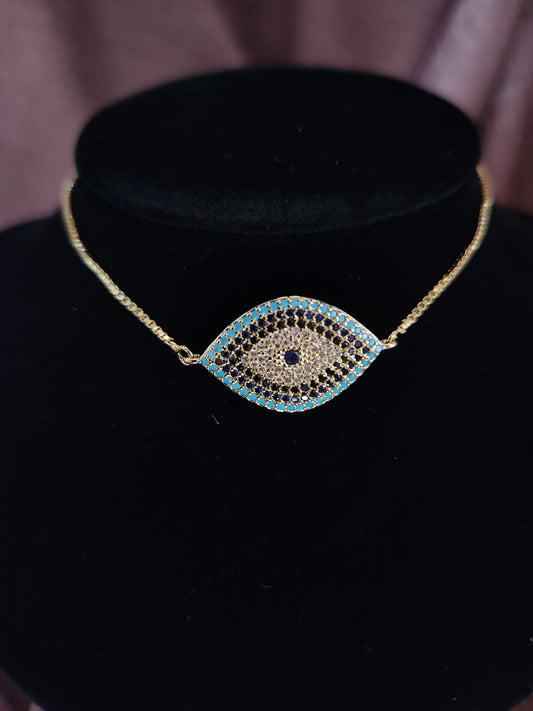 Gold Crystal Evil Eye Slide Bracelet