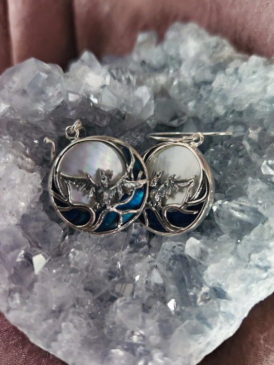 Sterling Silver Bat in Mother-Of-Pearl Moon Earrings