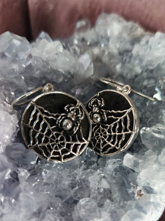Sterling Silver Mushroom Moon Earrings on Black Horn