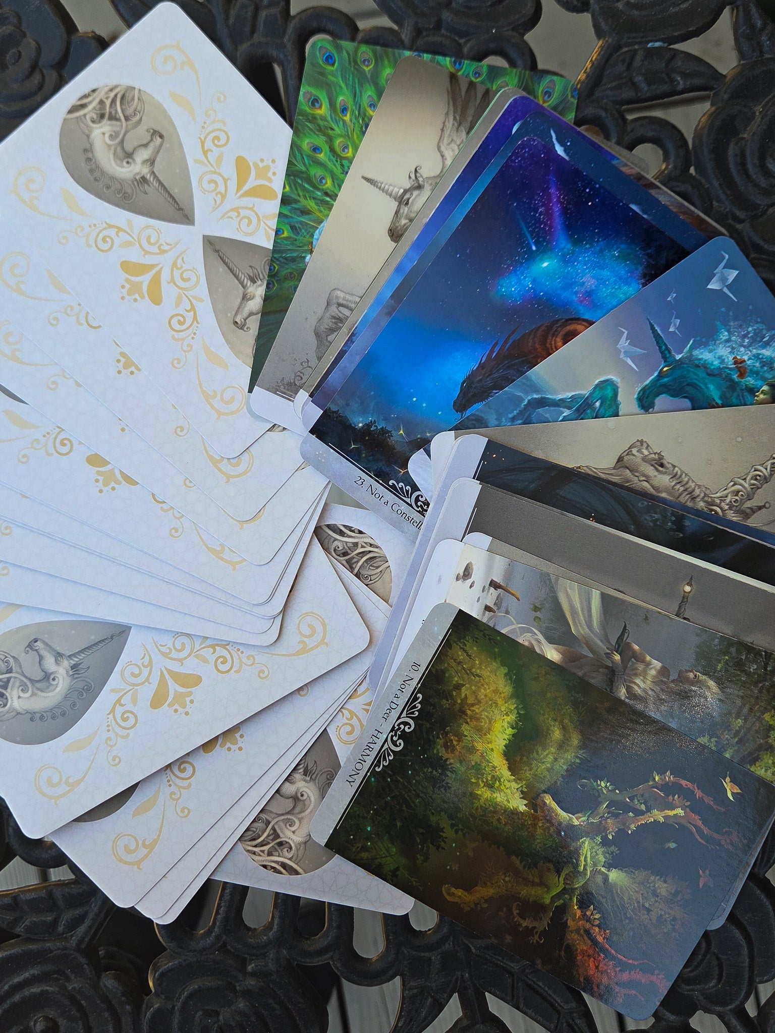 The magnificent essence of the unicorn soars into your inner spirit with the Barbieri Unicorns Oracle. Discover an utterly unique vision of unicorns that transcends the cutesy stereotype and brings these noble beasts into a magisterial light. This powerful oracle deck can be used for divinatory as well as inspirational readings, returning a sense of august wisdom to one of the world's most magical creatures.