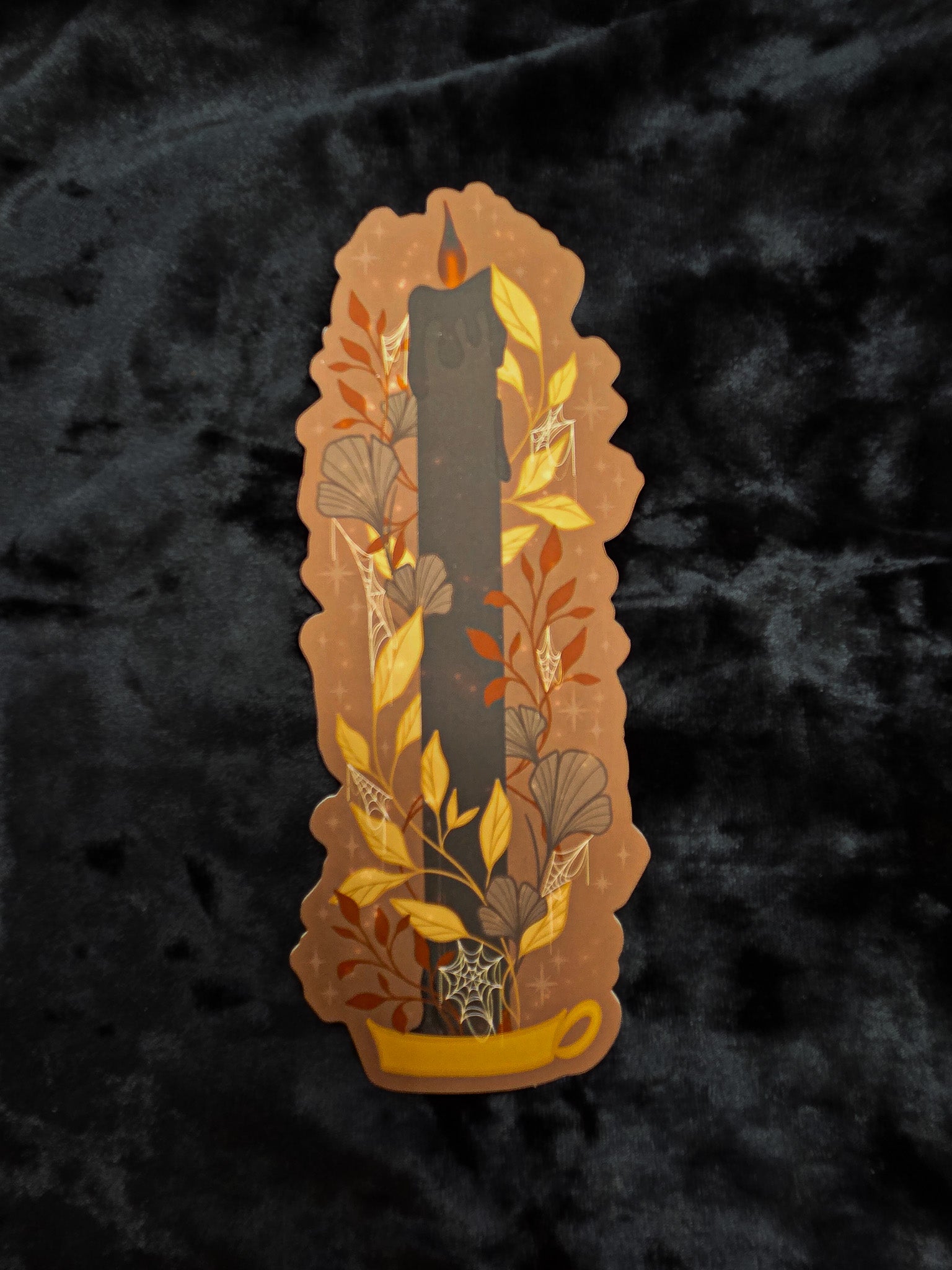 This hand-drawn Black Flame Candle Halloween dark fantasy bookmark features a luxurious soft-touch feel. Its double-sided and made from 16pt cardstock adding a touch of elegance to your reading experience. A must have for book lovers and spooky lovers. Details: Double-Sided Soft Touch 16pt Cut to Shaped Not Waterproof