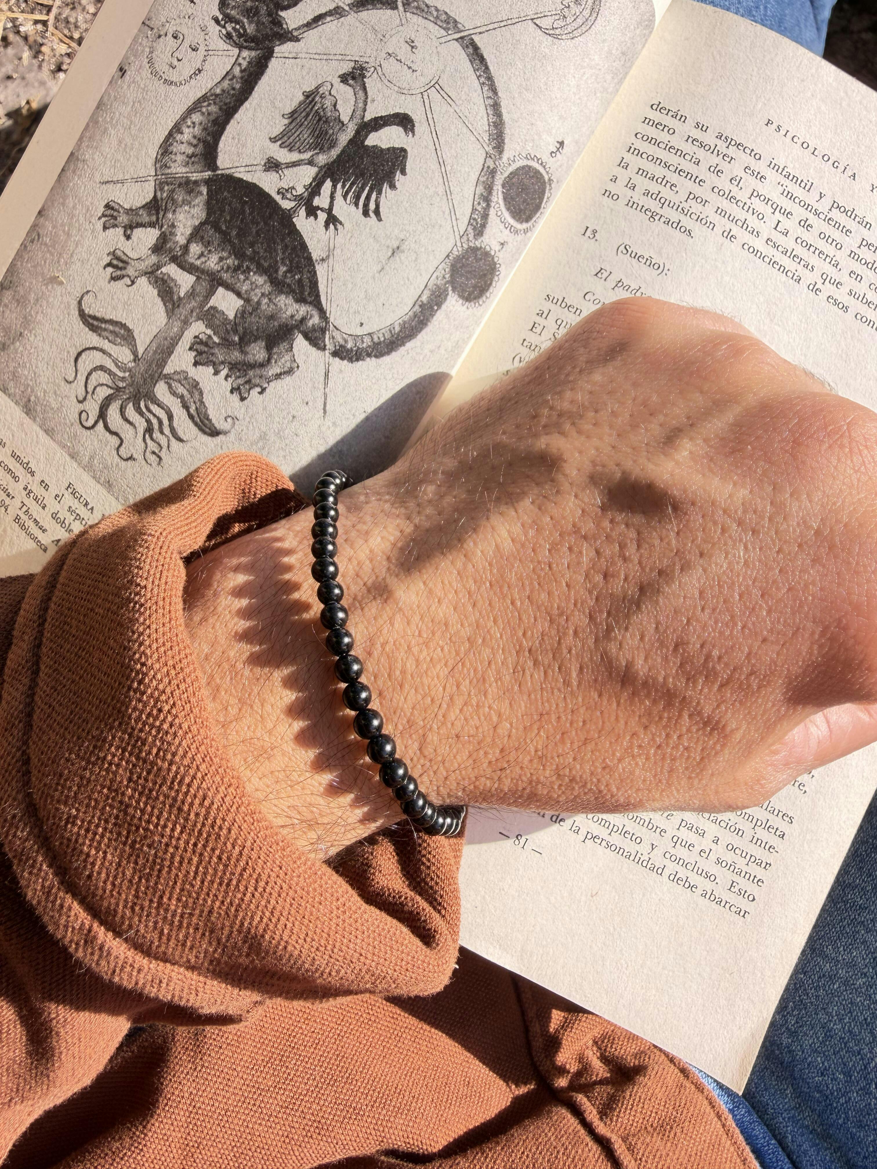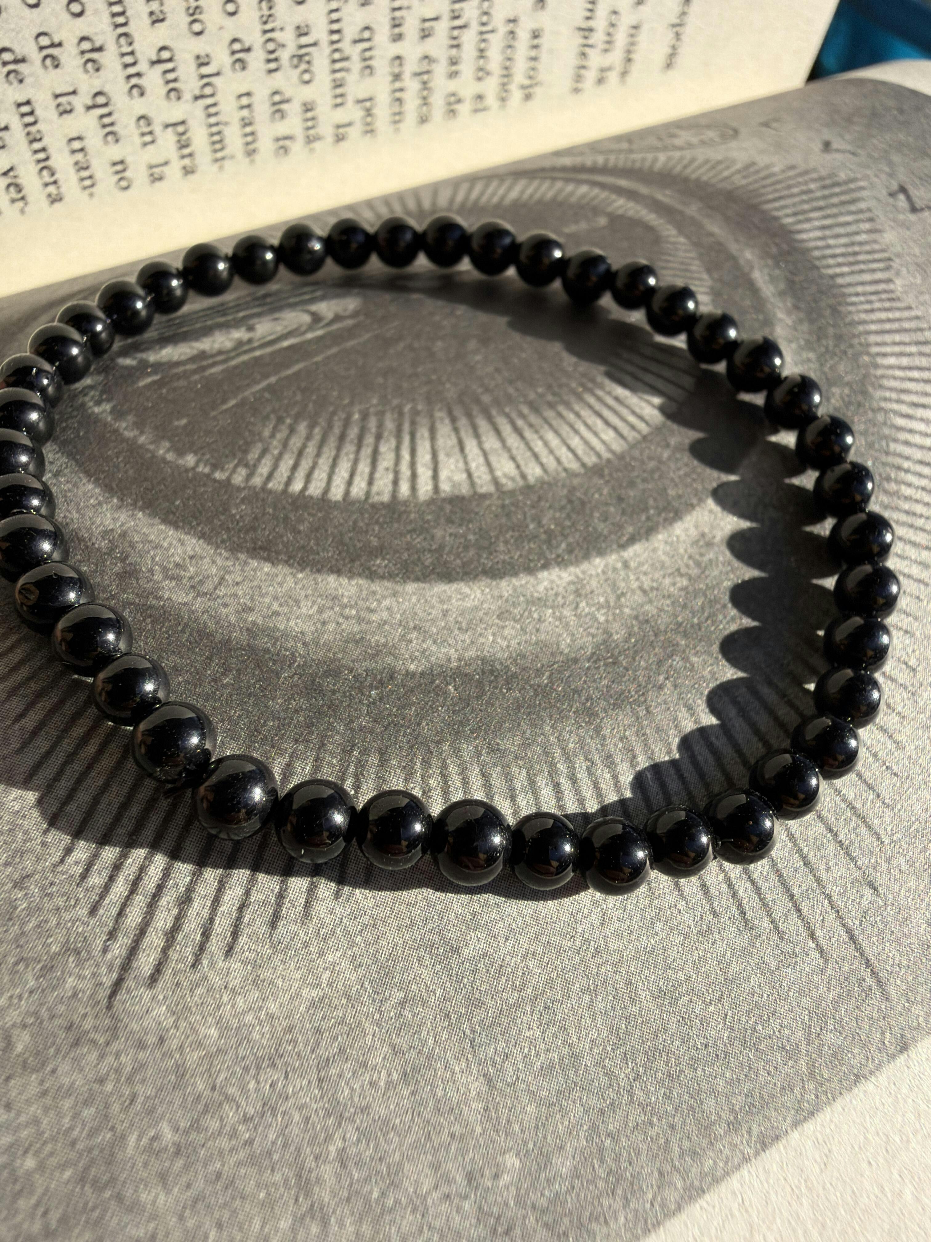 This 4mm Black Tourmaline bracelet features sleek, polished beads known for their powerful protective and grounding properties. Black Tourmaline is believed to help shield against negative energy and promote emotional stability. Its deep black hue and calming energy make it a stylish and meaningful accessory, perfect for enhancing balance and protection in your daily life.