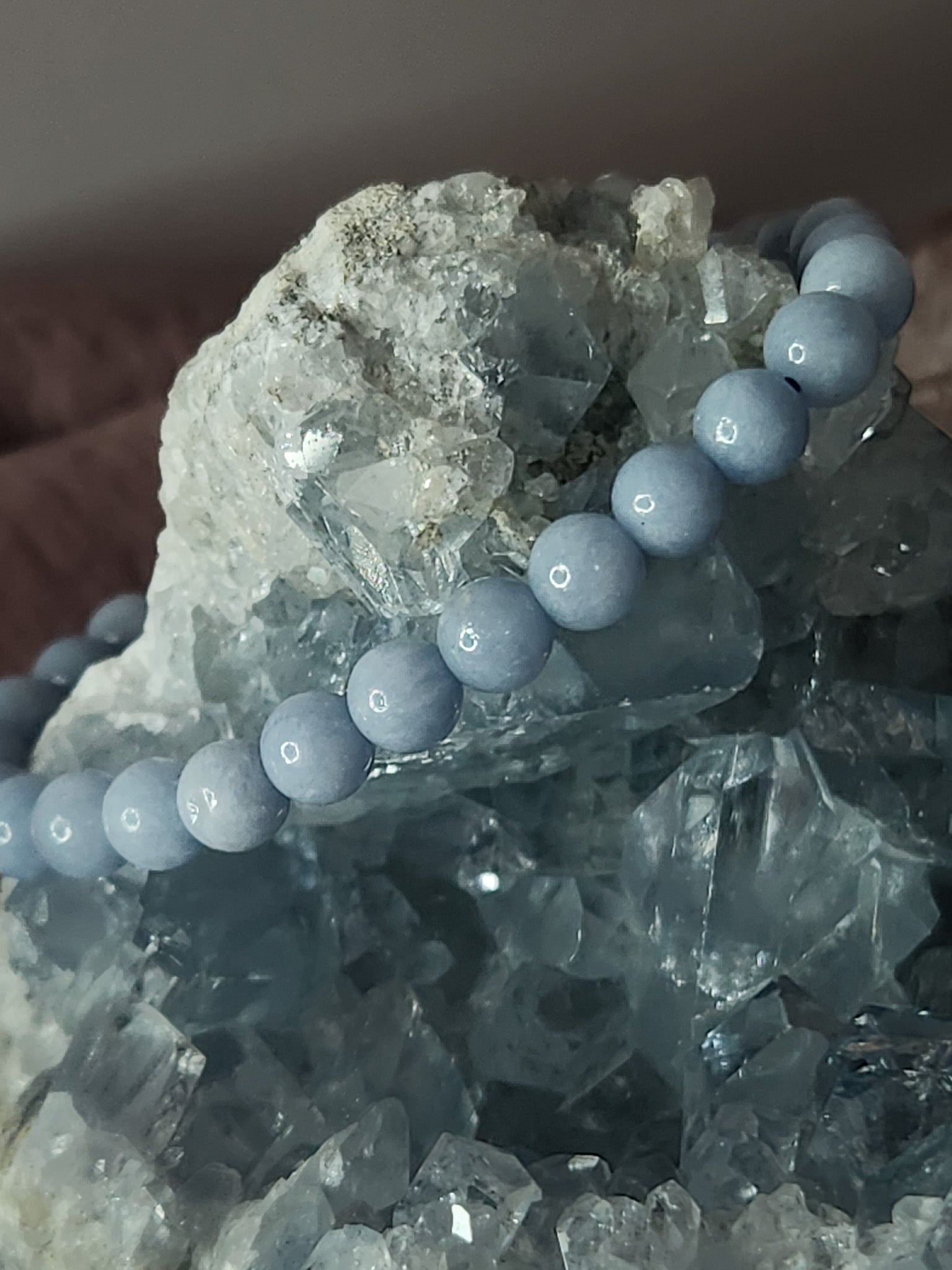This 6mm Blue Angelite bracelet features smooth, calming beads in a soft, angelic blue. Known for its soothing and spiritual properties, Blue Angelite is believed to enhance communication, peace, and spiritual awareness. Its gentle color and tranquil energy make it a perfect accessory for those seeking emotional healing, clarity, and a deeper connection to their higher self.