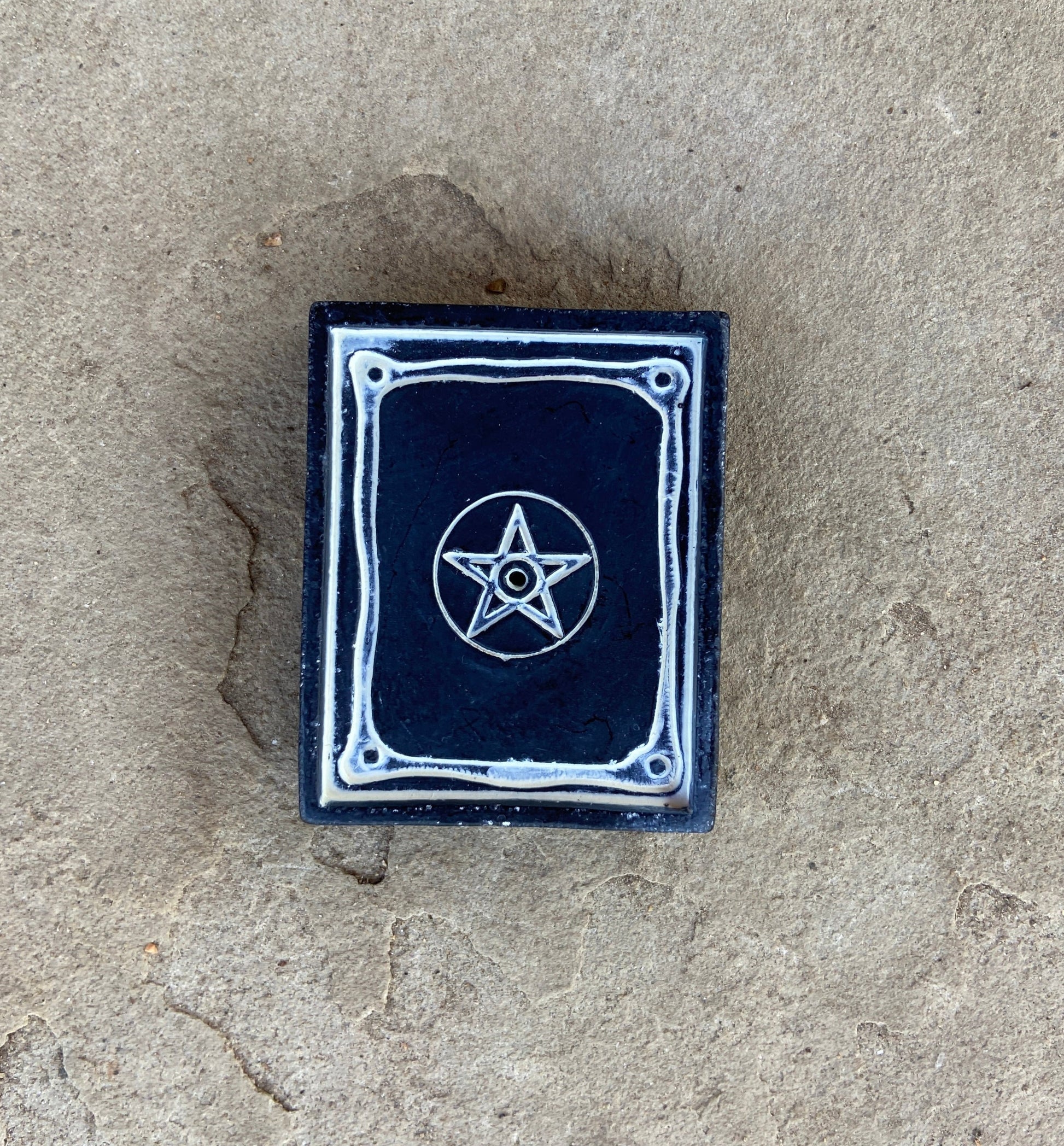 Wiccan inspired Incense Burner in the shape of a book with a pentacle in the middle.