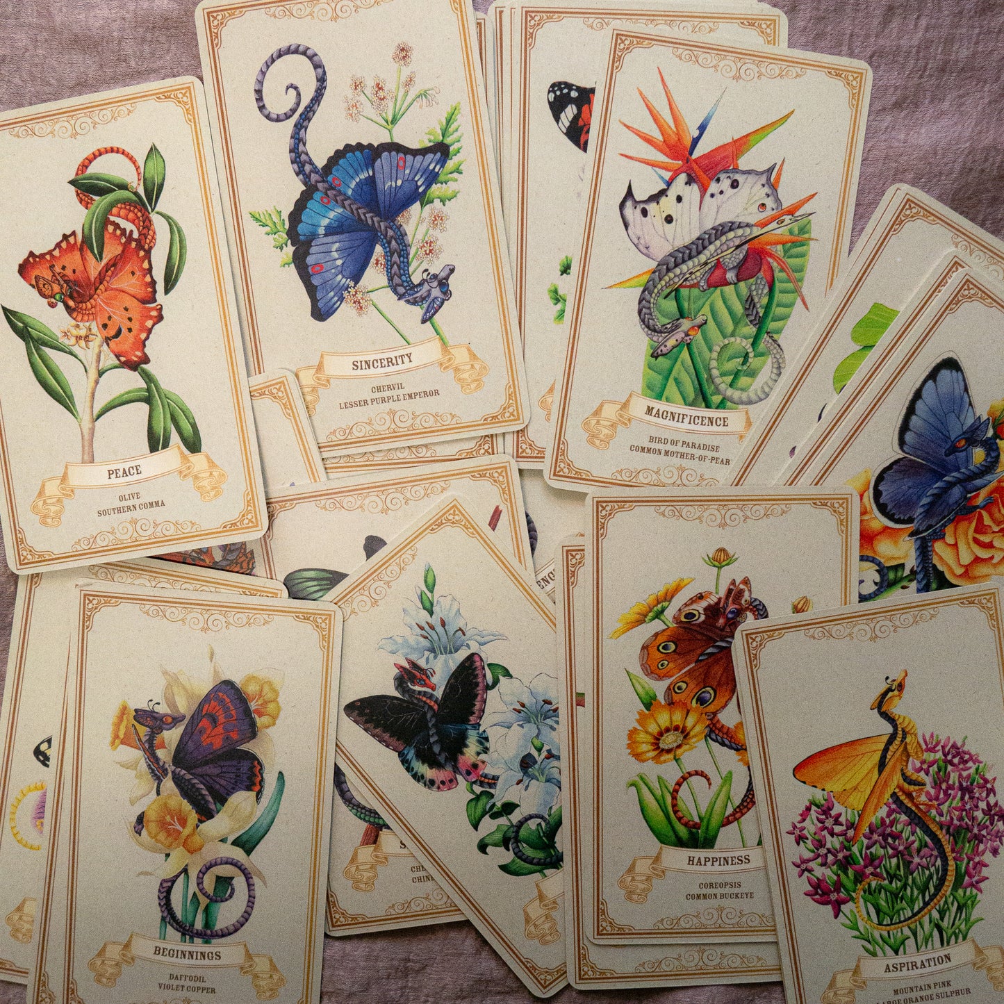 Enter a world where palm-sized dragons adorned with butterfly wings dance among a vibrant bouquet of wisdom in this delightful oracle deck. Carla Morrow, drawing from her childhood memories in her family’s flower shop and inspired by The Language of Flowers, brings to life a whimsical fusion of Victorian-era illustration and fantastical winged creatures. Each card in this enchanting deck carries messages beyond words, conveying hope, love, beauty, comfort, encouragement, and more through the language of flowers. Let these enchanted blossoms and their unique companions lift your spirits and illuminate the joys and positivity in your everyday life. With 44 cards and a 108-page guidebook, this deck is perfect for daily guidance, contemplation, and inspiration, offering a treasure trove of messages waiting to be discovered.