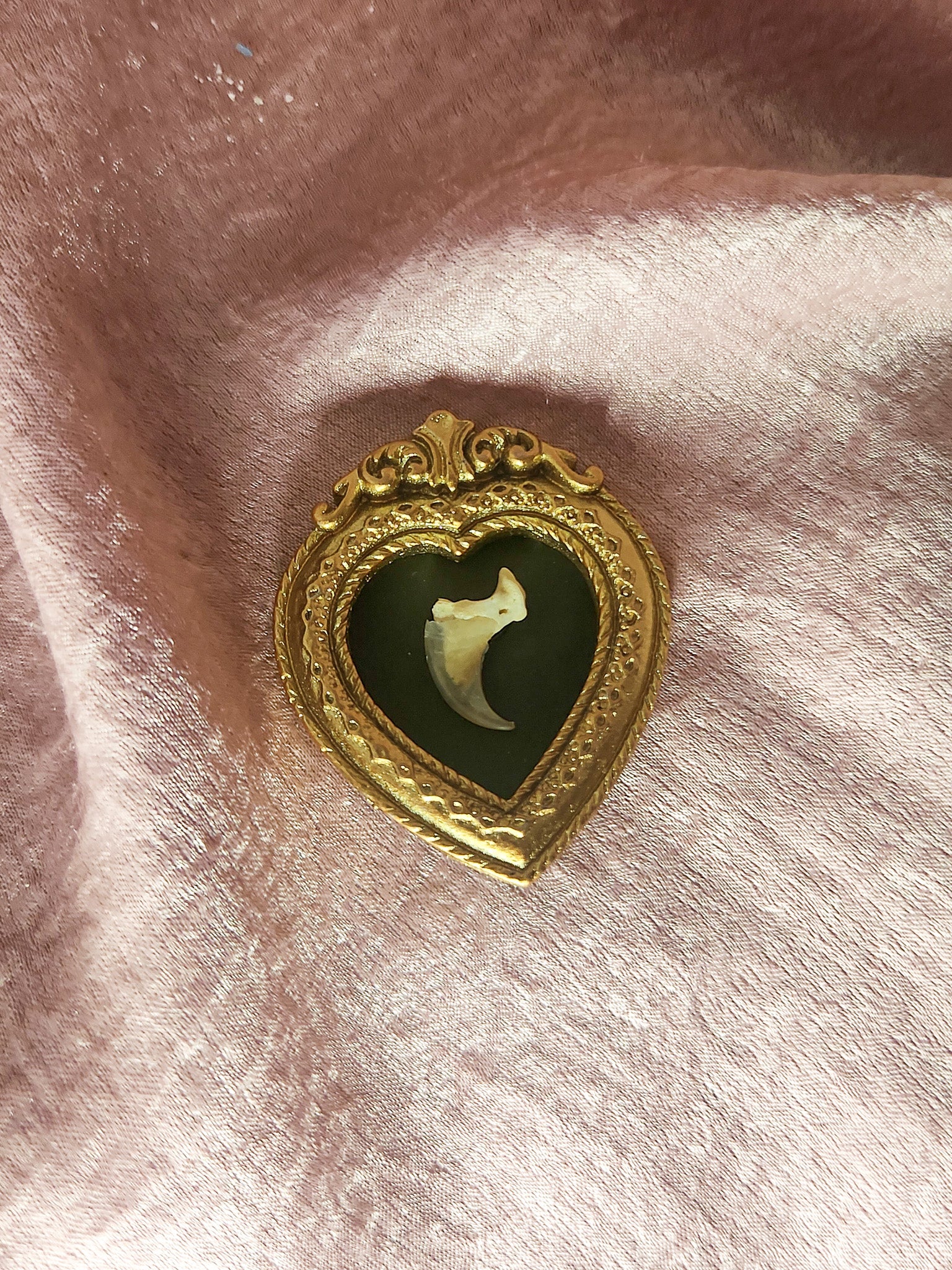 These ornate-style magnets are made of resin, each one with its own cleaned animal tooth or bone.