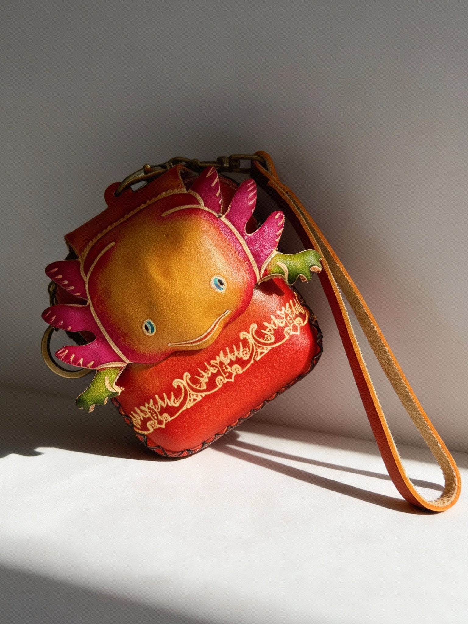 Made from high-quality leather, this wallet boasts a unique Axolotl design that adds a touch of whimsy to any outfit. Perfect for storing your coins, notes, or cards, this compact yet spacious purse is ideal for on-the-go use.