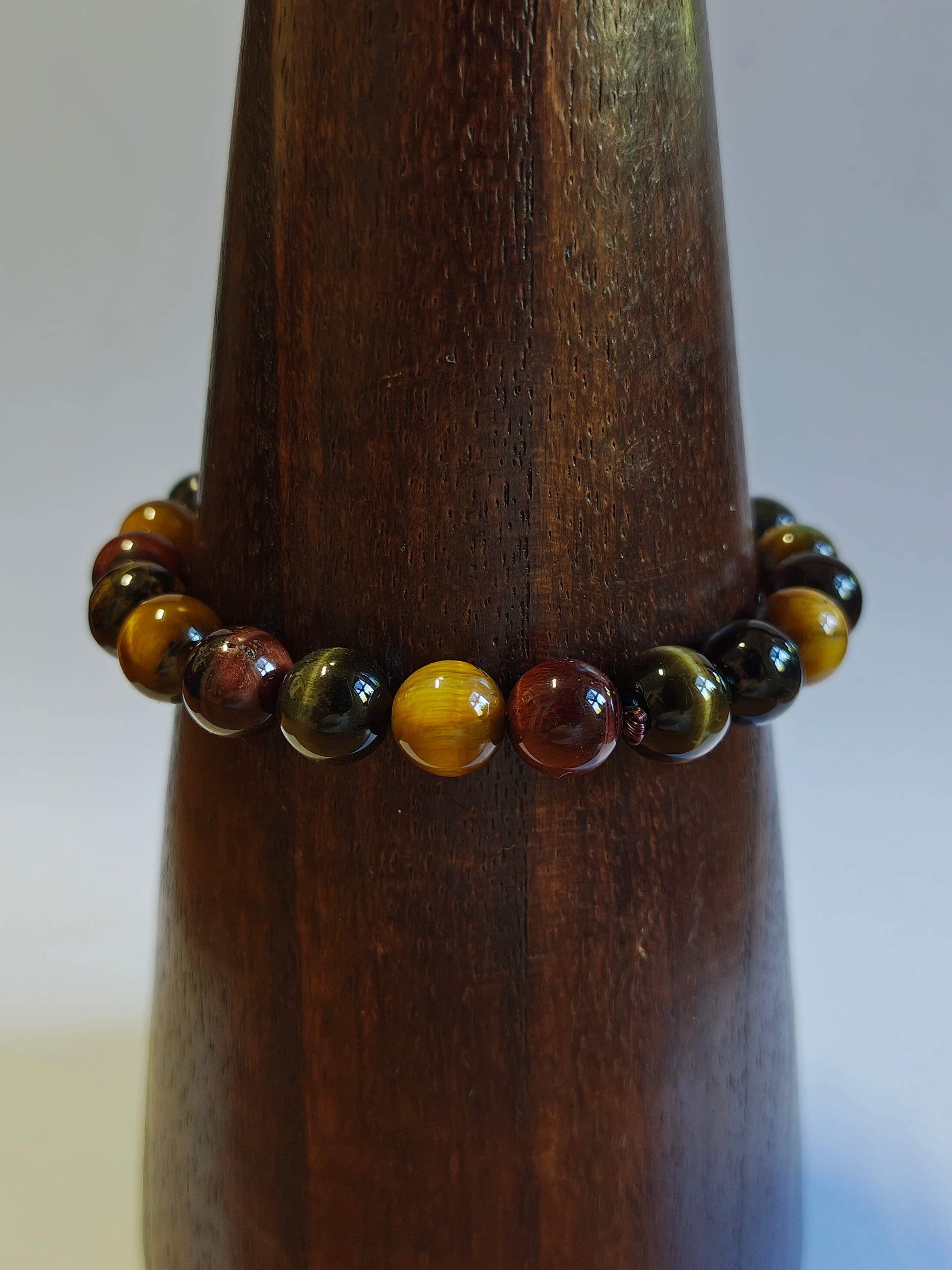 Multi Tiger Eye is a variety of Tiger's Eye, a stone known for promoting courage, self-confidence, and protection. The addition of multiple colors enhances the stone's versatility, with the different shades (like gold, red, blue, green, and purple) representing various energies and further supporting grounding, balance, and the ability to overcome challenges. It is used to stimulate chakras, attract wealth, and bring clarity.