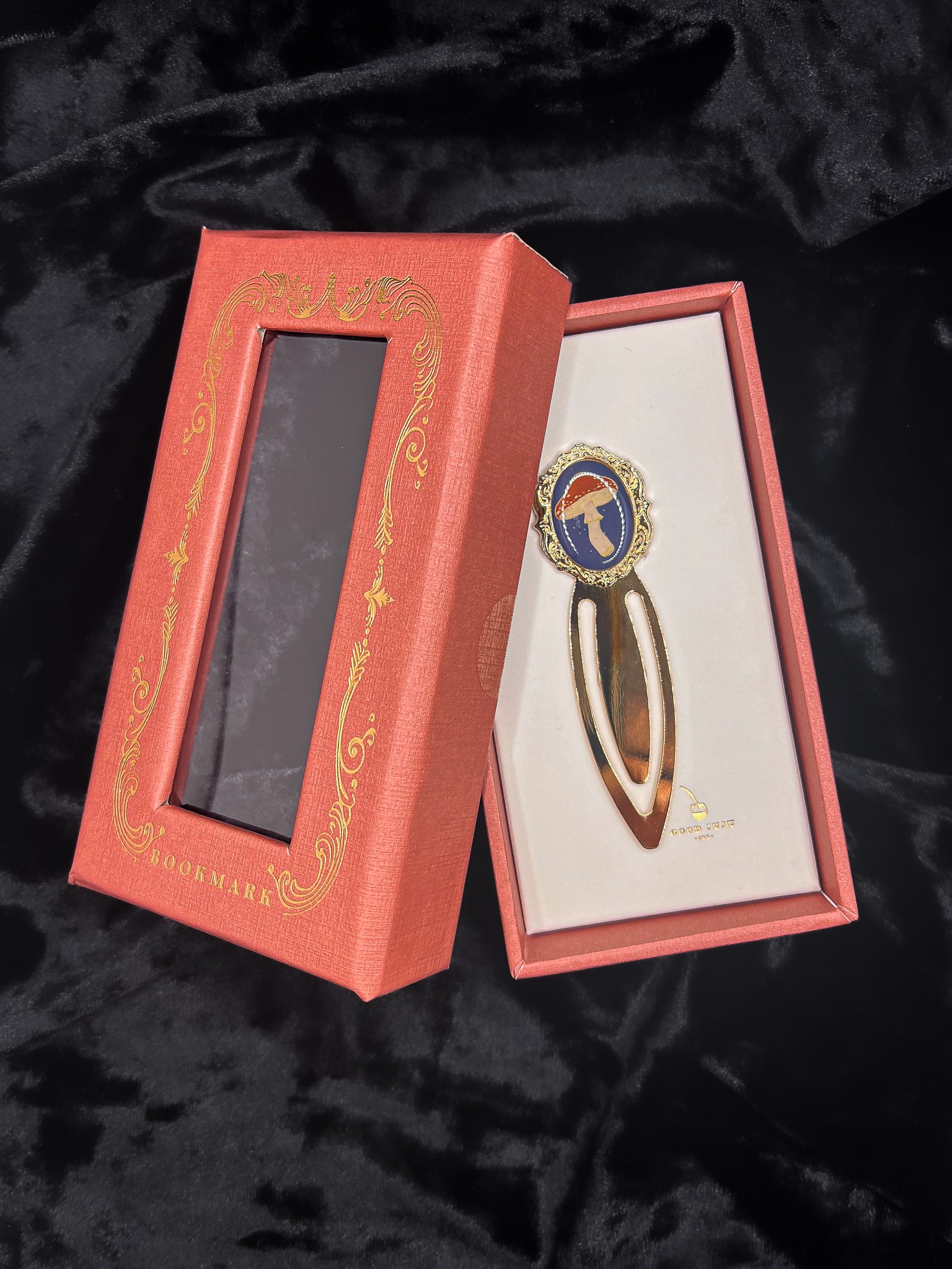Our Mushroom Metal Clip Bookmark featuring a resin decal with hand-illustrated artwork. Packaged within a vintage inspired two-piece display box measuring 3" x 5.5".