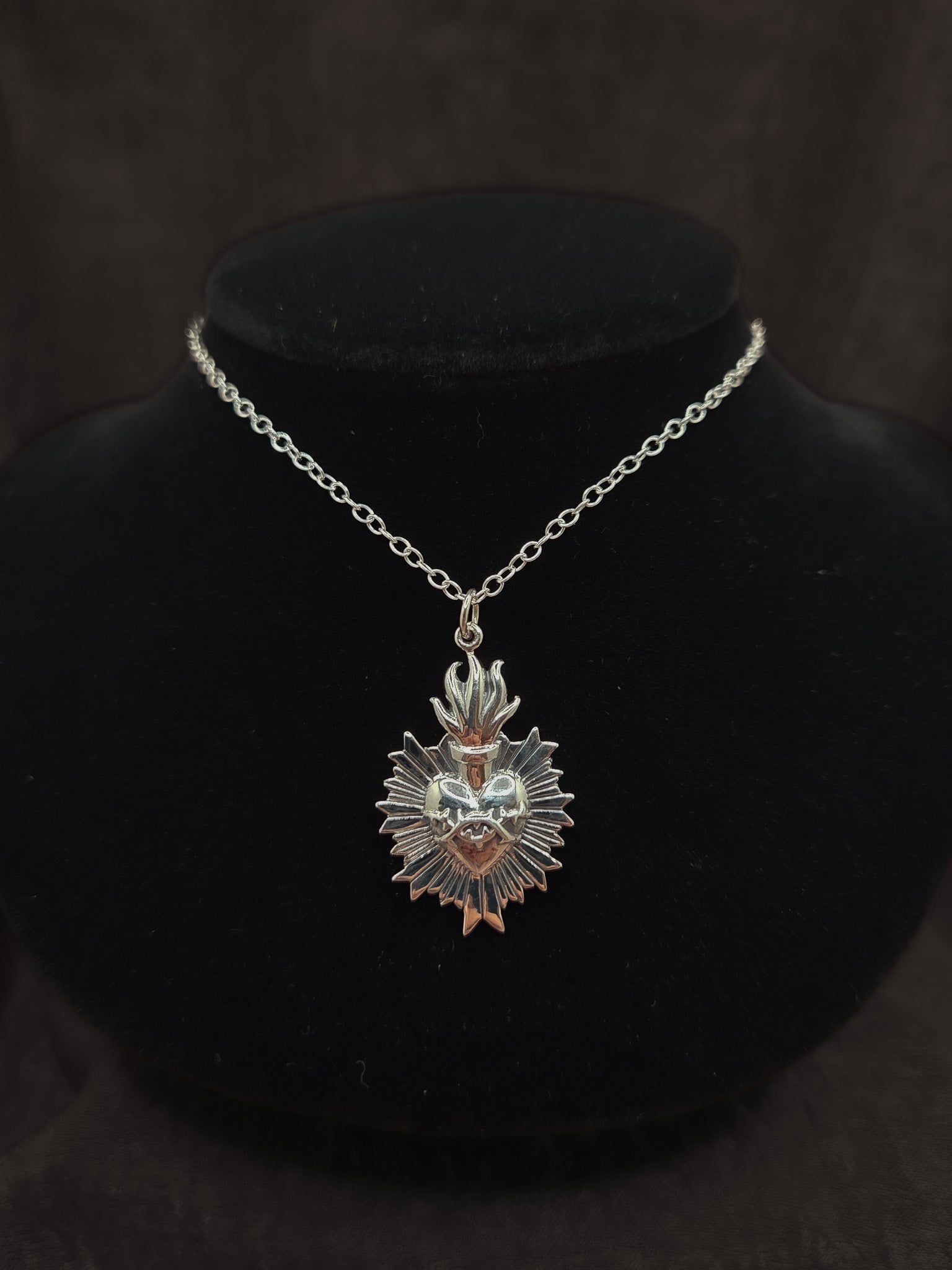 This radiant design is romantic and fierce with beautiful detailing on the thorns and rays of light. Wear it close to your own heart as a comforting reminder of faith.