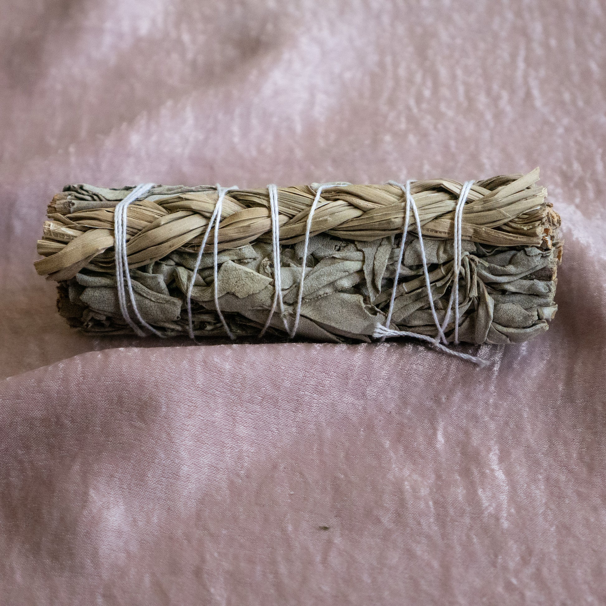 4" Organic White Sage & Sweetgrass Smudge Stick