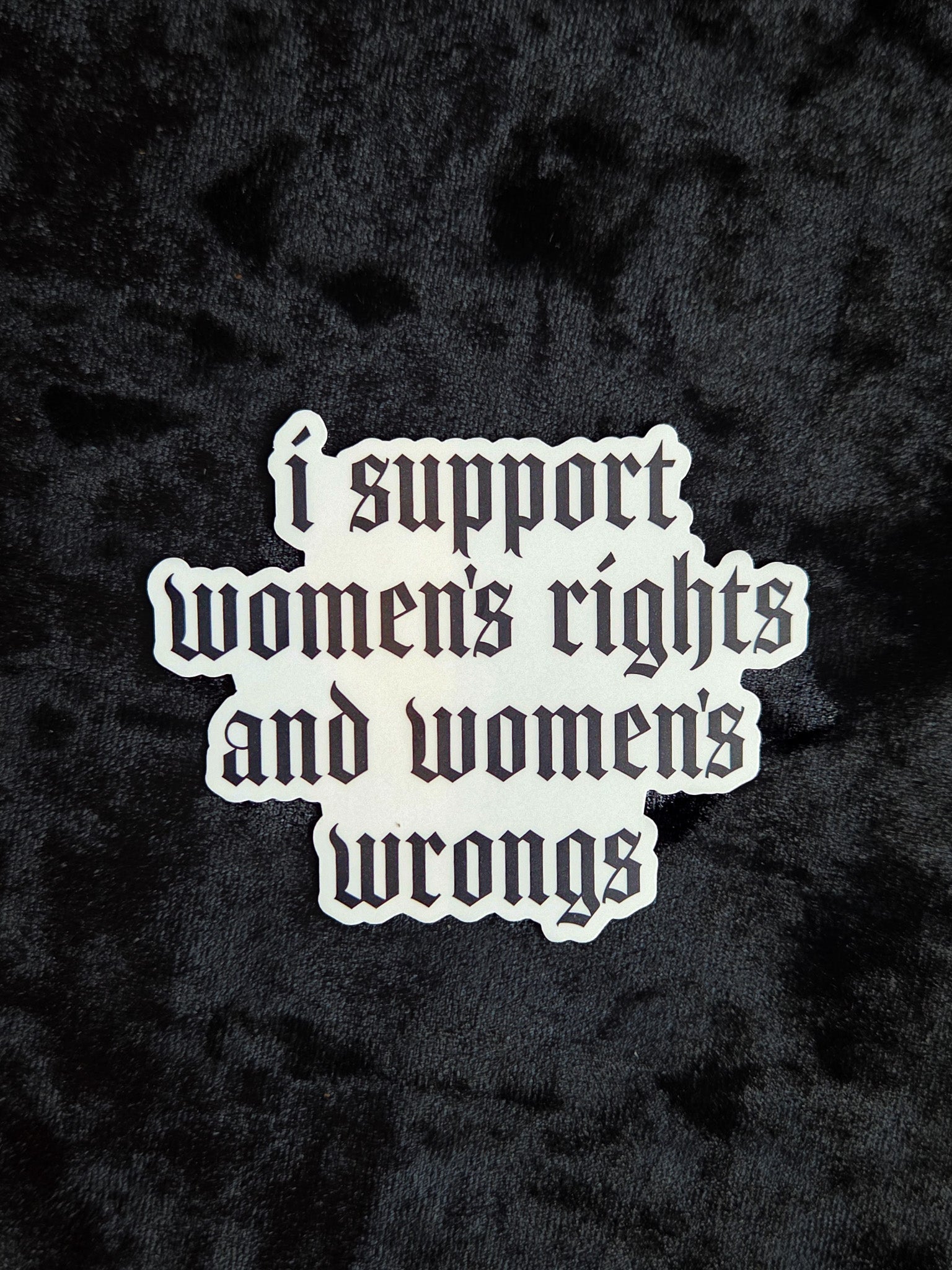 Support Womens Rights and Wrongs Sticker, Funny Feminist