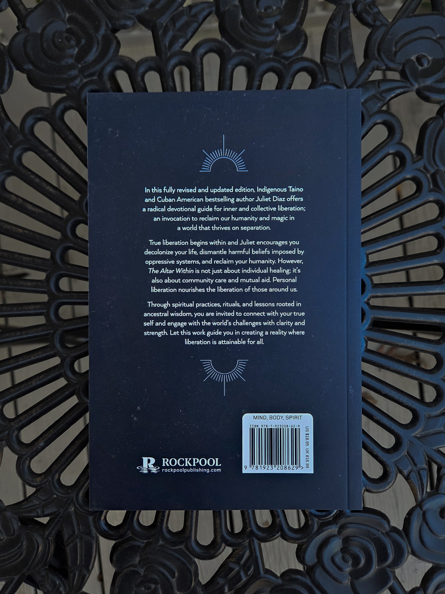 Indigenous Taino and first-generation Cuban American author Juliet Diaz, globally renowned for her award-winning and internationally bestselling works, presents a groundbreaking spiritual revolution, all in a simply gorgeous paperback. In this new and revised edition, bestselling Indigenous Taino and Cuban American author Juliet Diaz offers a radical devotional guide for inner and collective liberation in this transformative work, an invocation to reclaim our humanity and magic in a world that thrives on separation. True liberation requires unlearning everything we’ve been taught about who we are, how we should exist, and what is possible. The Altar Within provides a path for those who refuse to separate spirituality from justice and seek healing that does not bypass the realities of oppression and the struggles we face.