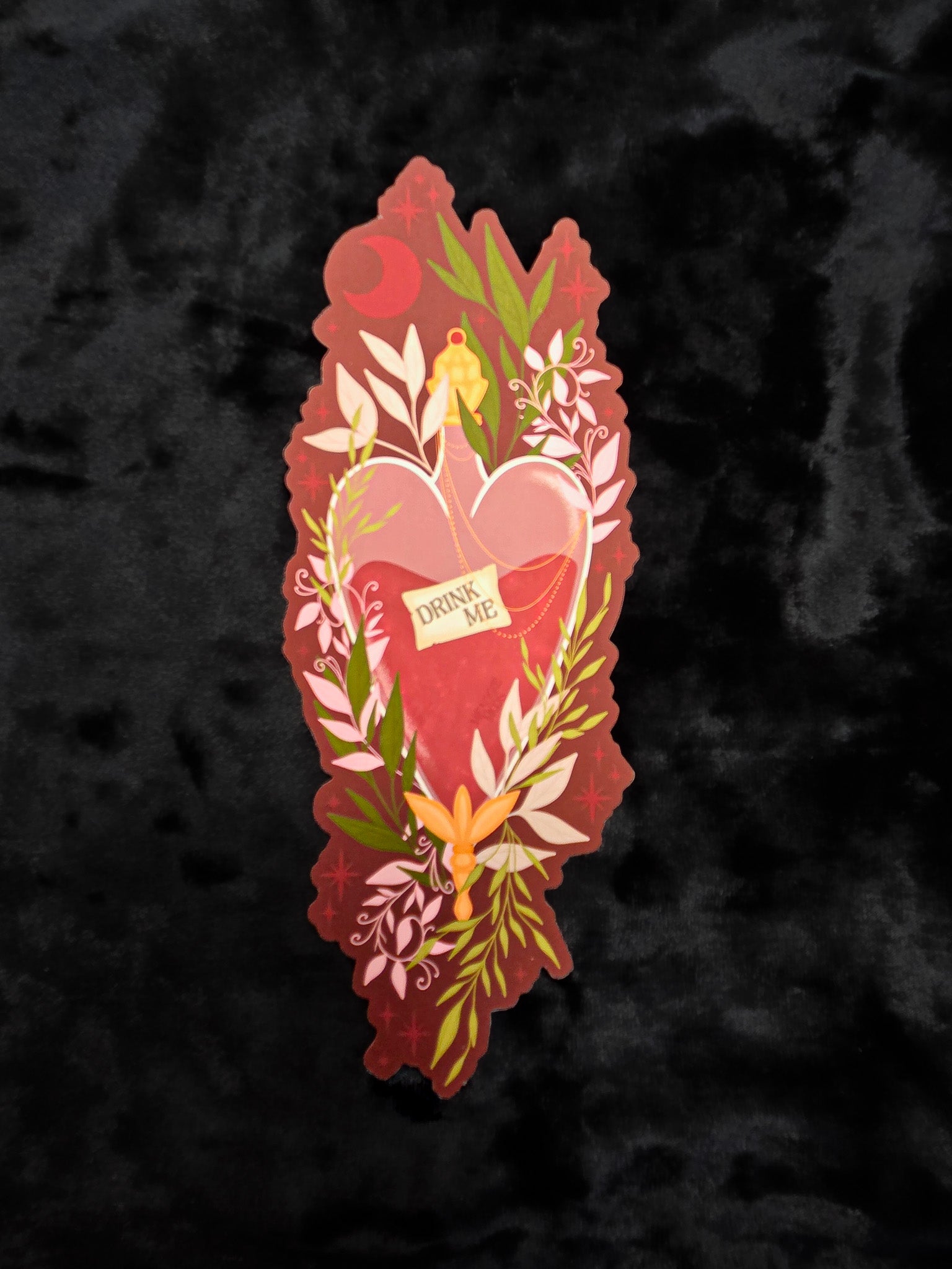 This hand-drawn Drink Me Potion fantasy bookmark features a luxurious soft-touch feel. Its double-sided and made from 16pt cardstock adding a touch of elegance to your reading experience. A must have for book lovers and Alice in Wonderland lovers. Details: Double-Sided Soft Touch 16pt Cut to Shaped Not Waterproof